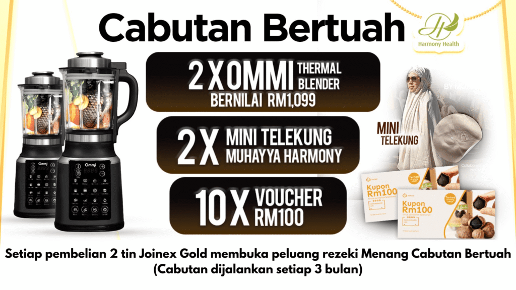 Bancuh 2 sudu besar Joinex Gold dengan 150ml air suam, kacau hingga larut, dan minum 1-2 kali sehari untuk kesan optimum.